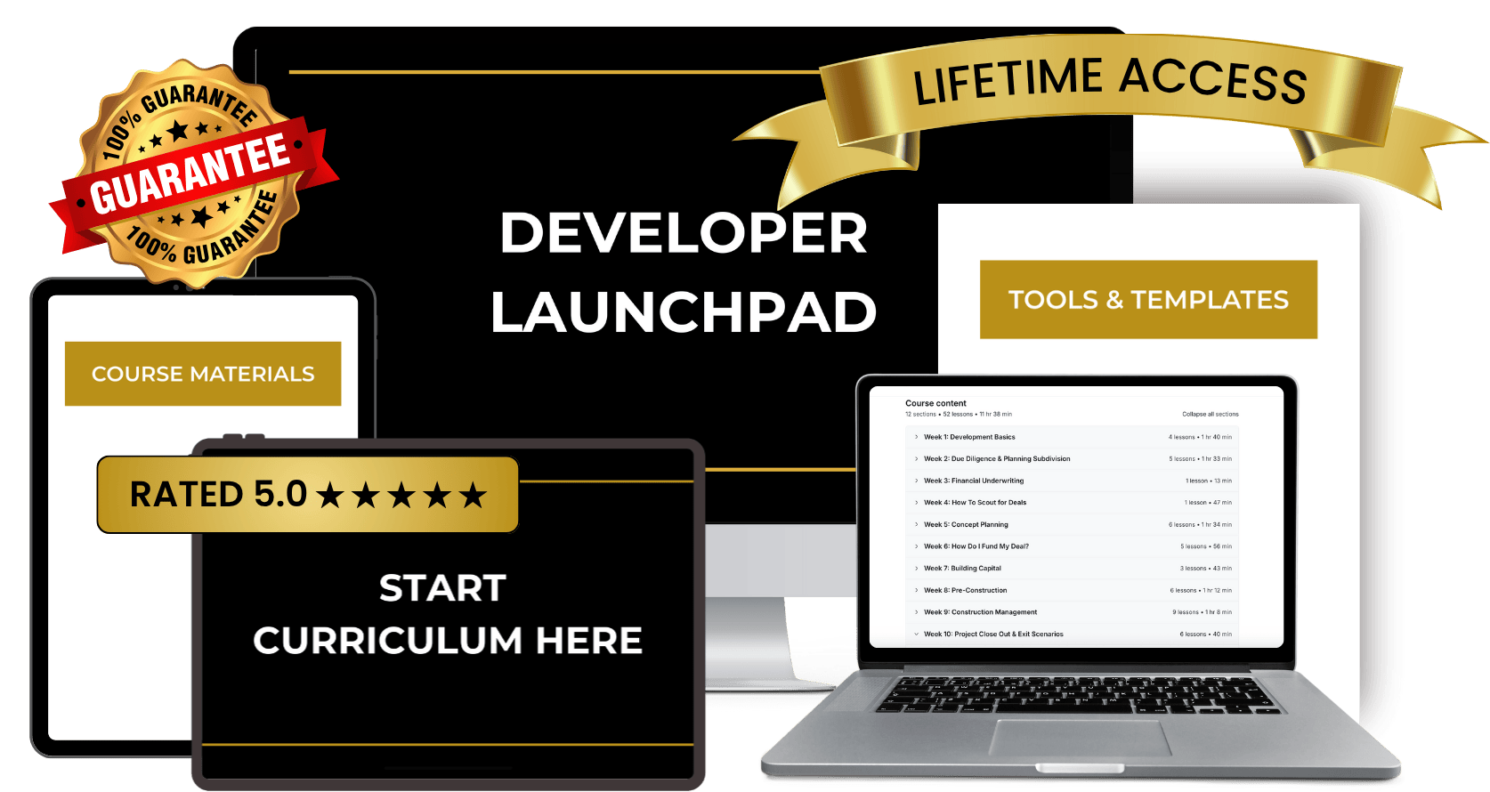 We are confident that you’ll consider the program an invaluable investment in your real estate development journey. Nevertheless, if you find yourself struggling, as long as you’ve completed 100% of the core curriculum, we will offer weekly 1-1 calls to help you get on track.